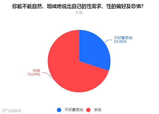 女生中,70.04%的人表示会说,29.96%的人表示不好意思说。