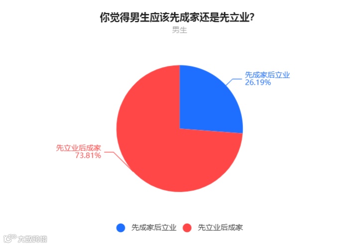 男生中,26.19%的人表示先成家后立业,73.81%的人表示先立业后成家。