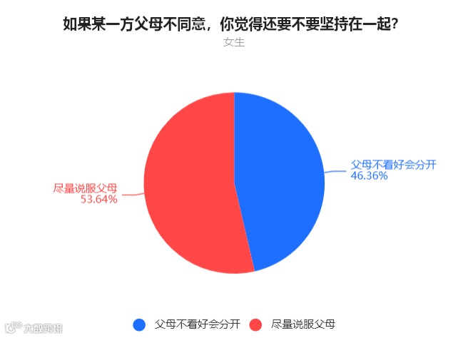 女生中,53.64%的人表示会尽量说服父母,46.36%的人表示父母不同意的话,自己会选择分开。