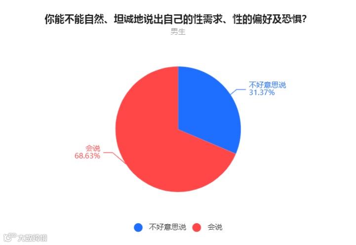 男生中,68.63%的人表示会说,31.37%的人表示不好意思说。