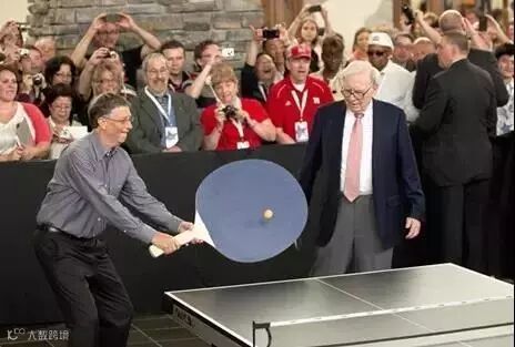 近距离观摩大会传统项目,一睹股神和微软大亨的另一面风采。美国华裔乒乓球明星邢延华多次受巴菲特邀请与其切磋球技。乒乓球能够锻炼灵活与协调性,刺激右脑面对几乎整天都在运动左脑的两位超级富豪来说是很好的放松,比尔盖茨还颇为搞笑地用上了大如锅盖的乒乓球拍。
