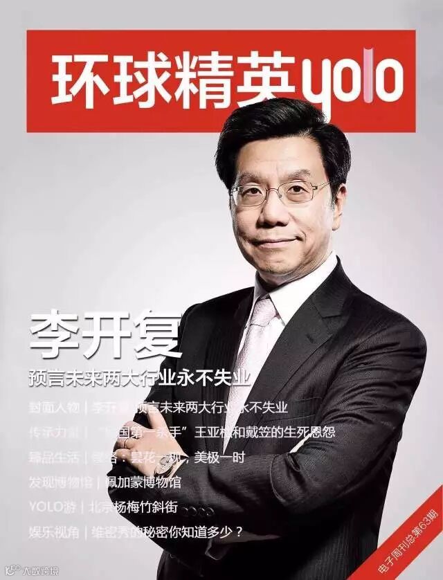 《环球精英YOLO》杂志,是一本以全球经济、法律、金融、文化、教育、艺术、医学等领域具有社会影响力的人物专访为核心的杂志。以电子周刊的方式呈现于新媒体,以年刊的方式呈现于传统纸媒,以线下互动的方式为国际精英搭建交流平台。