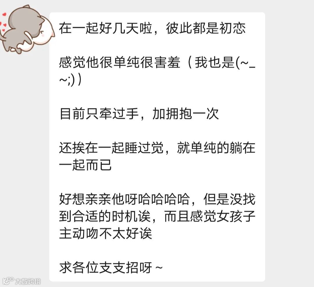 在一起好几天啦,彼此都是初恋,他好害羞。