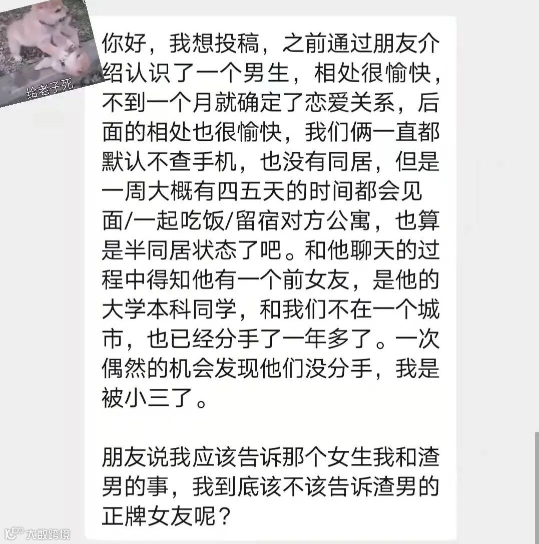 朋友都说该向渣男的正牌女友揭穿他的渣男行径!我该不该告诉她呢?