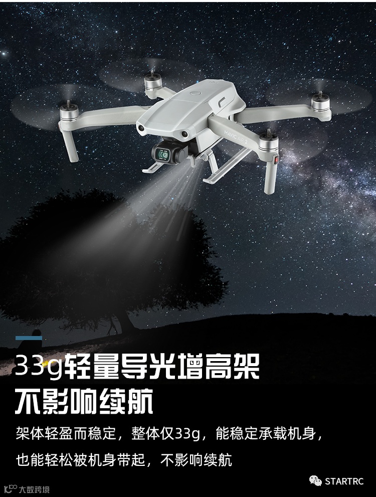 哈喽!又和大家见面了!今天小编给大家推荐的是DJI大疆Mavic Air 2 /Air 2S折叠脚架,白天不懂夜的黑,如何把分散的灯光汇聚到一起导向正前方呢,这款产品就可以实现这个效果了,请看下图展示: