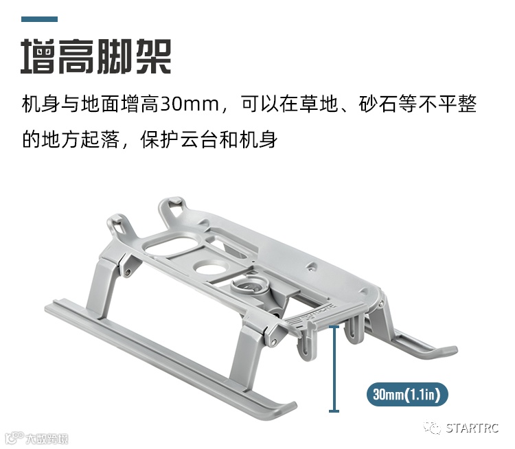 3>带增高作用,有效增高无人机30mm,避免起降期间,地面杂物弄脏机身及损坏云台 ;