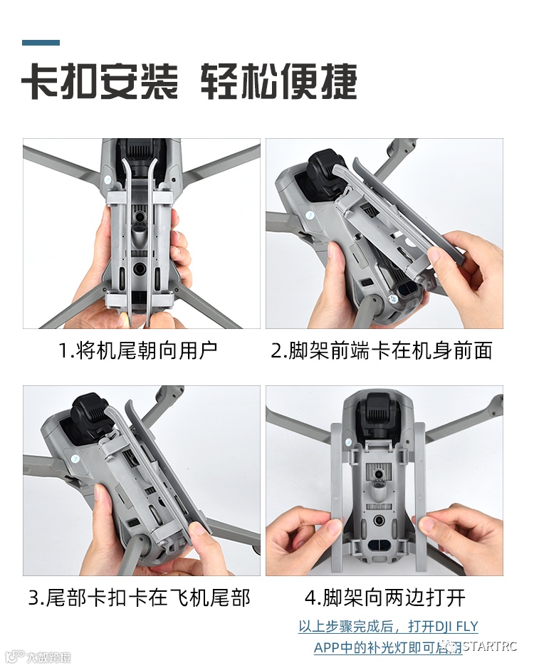 品名:无人机导光折射折叠增高脚架/飞行器前下视悬停射灯/便携折叠起落架夜航探照脚架