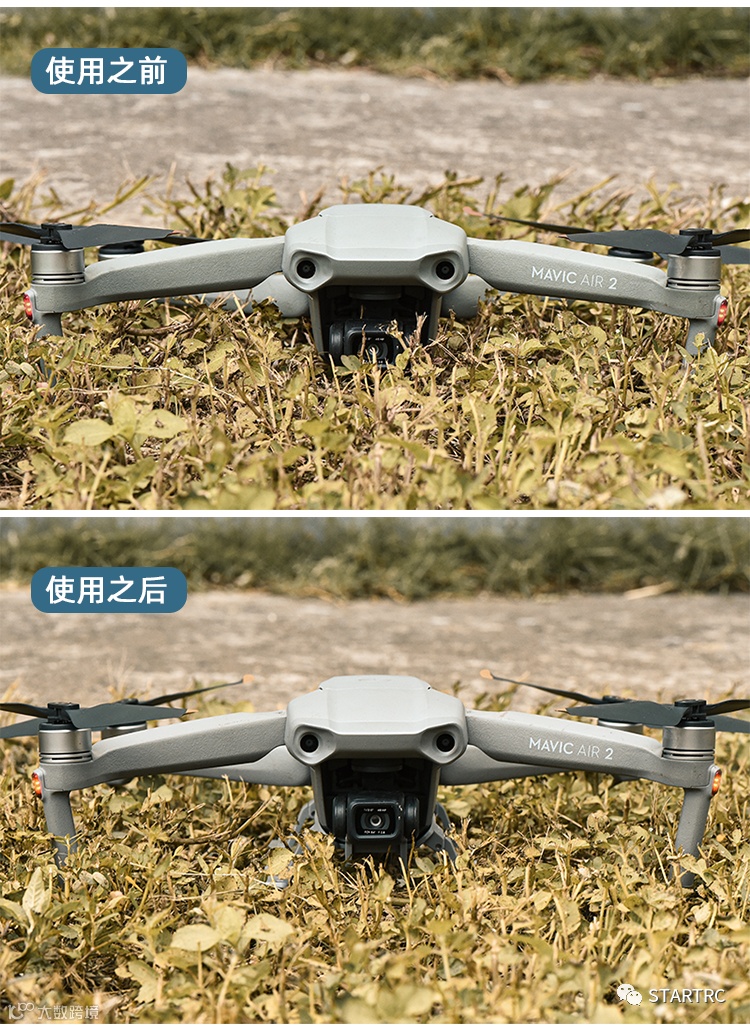 无人机降落在草地上,使用前后的效果图展示如下:
