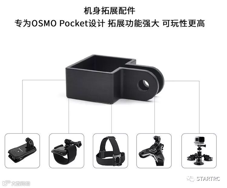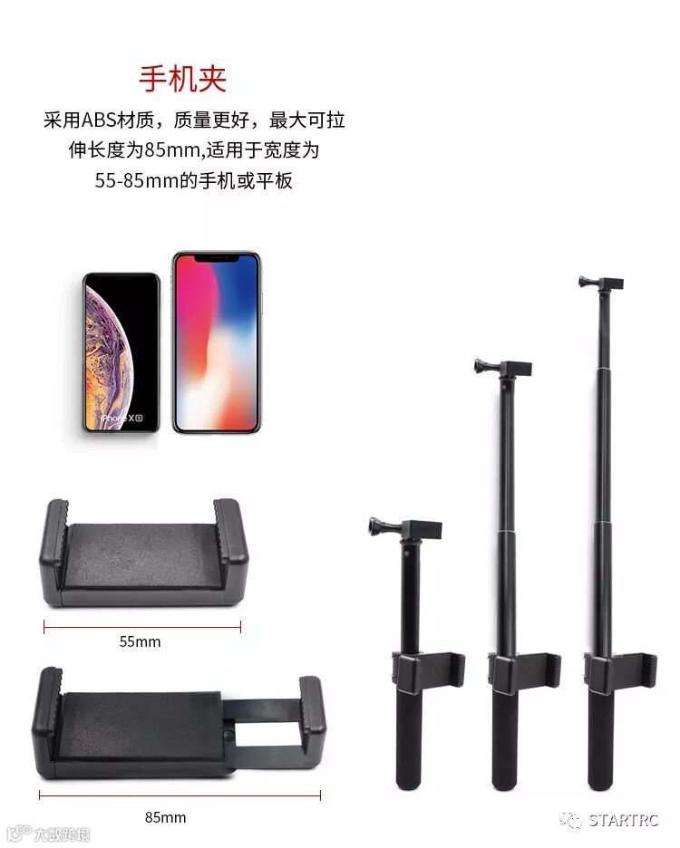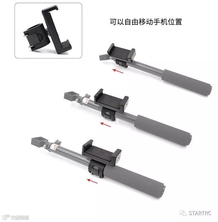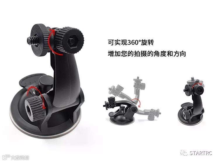 STARTRC多功能拓展配件可以和延长自拍杆,桌面三脚架,背包夹,汽车玻璃吸盘,自行车支架搭配使用。
