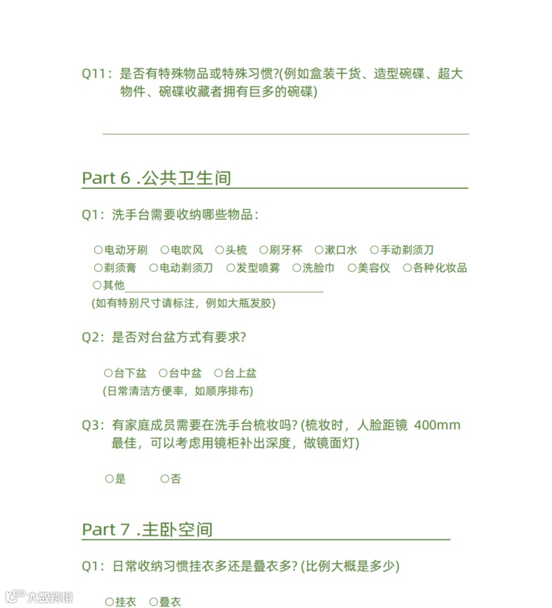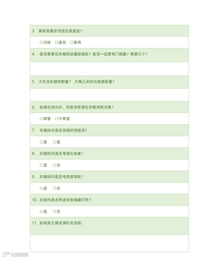 |客户装修需求表| 家装空间收纳需求调查问卷|