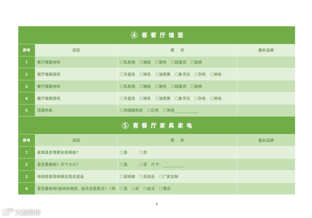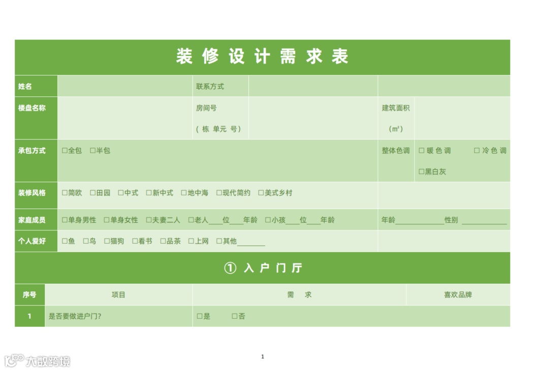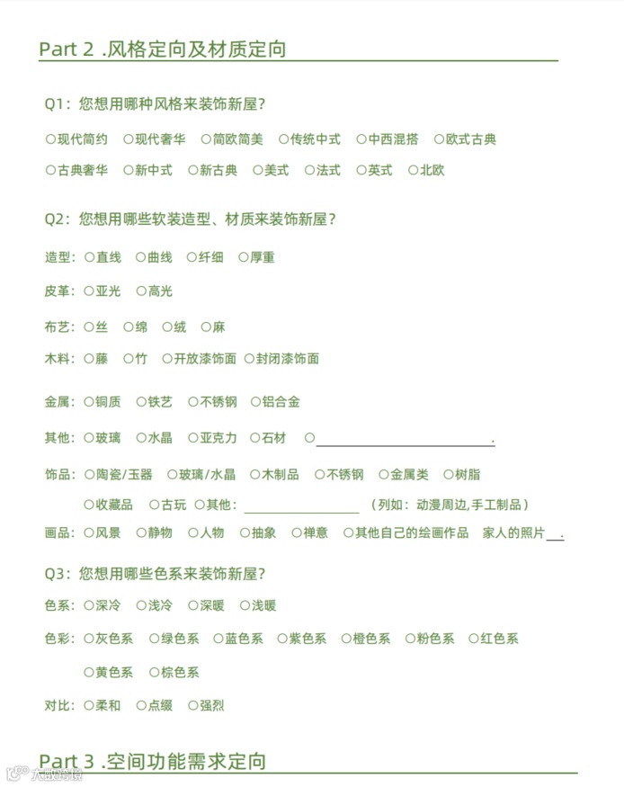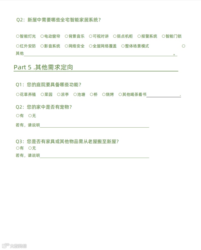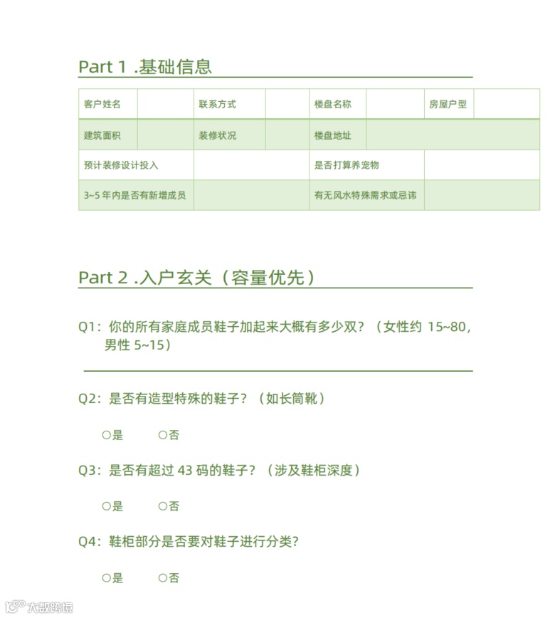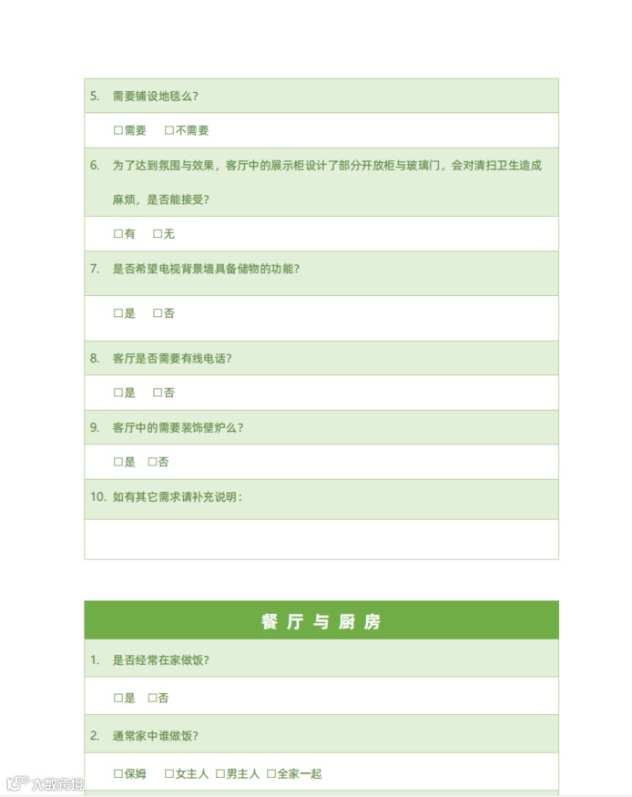 |客户装修意向表 | 客户生活习惯需求问卷|