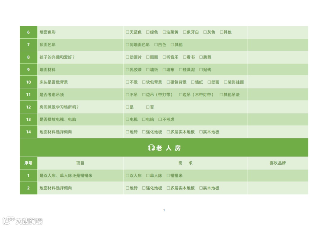 "2023室内设计师必备——客户需求调查表"