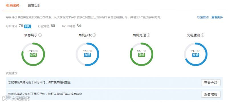 商机获取分为总访客数、点击率、总商机数三部分,通过各项的提升拉高总体分数。
