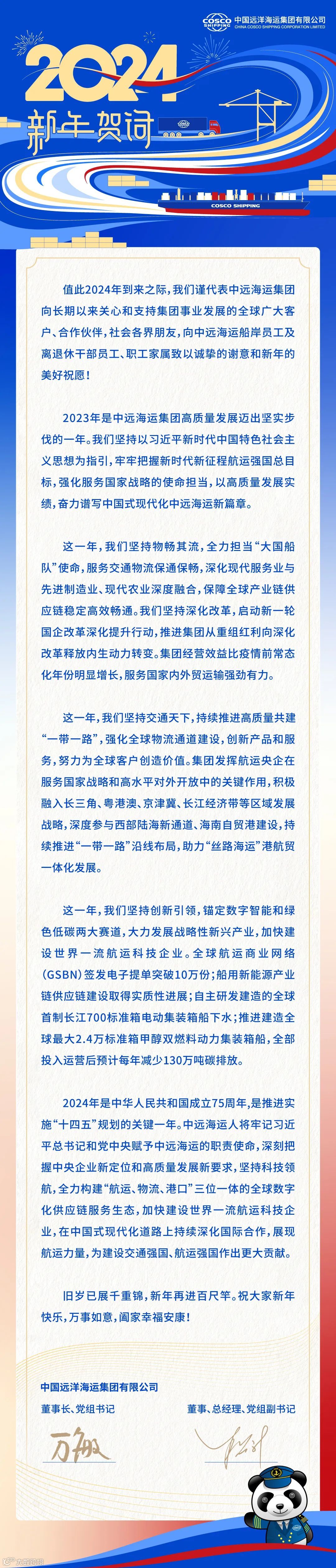 中远海运集团2024年新年贺词