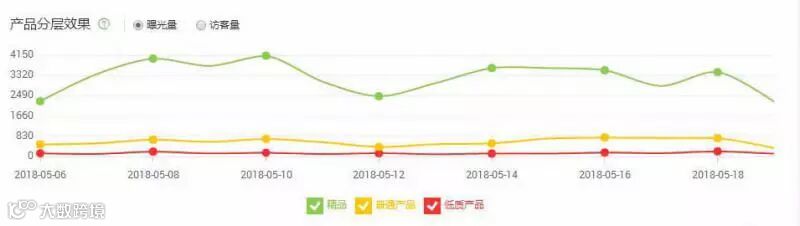 在产品的曝光量方面:精品的曝光量>>普通产品>低质产品