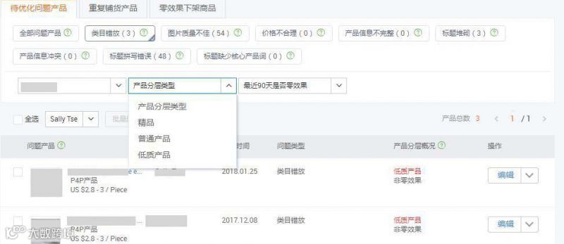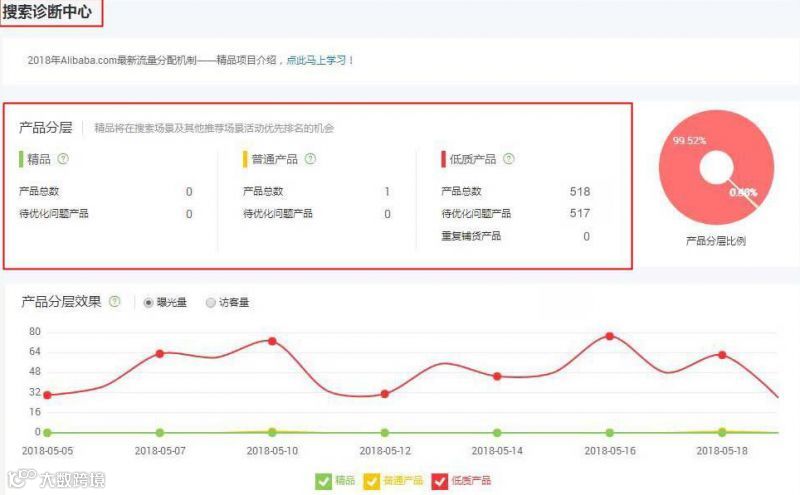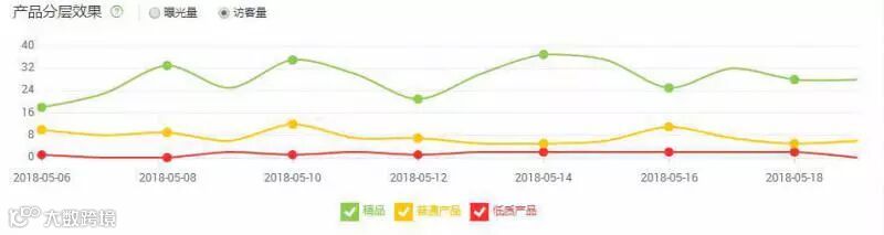 您可以看到您的产品被分为精品、普通产品、低质产品,这就是产品分层。(要是您看到都是红色的,别紧张,等正在上线了,数据可能会有所变化。)