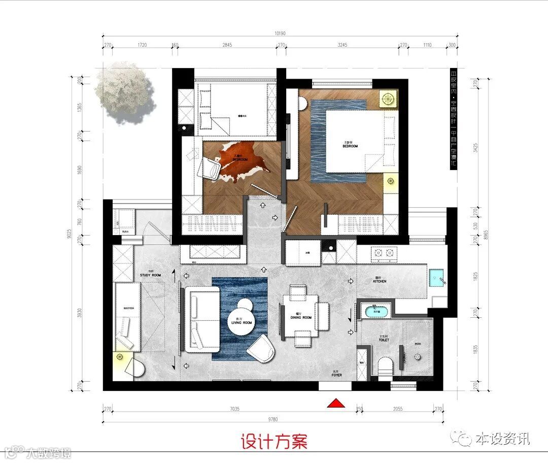 问题一:入户正对厨房门,整体视觉不好,动线也比较尴尬。