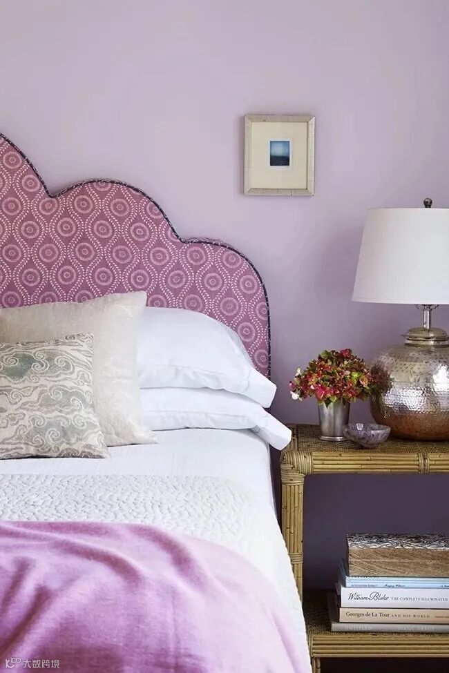 轻柔而迷人的香芋紫用来装饰卧室,十分得当。香芋紫搭配白色,营造出淡雅浪漫的室内空间。