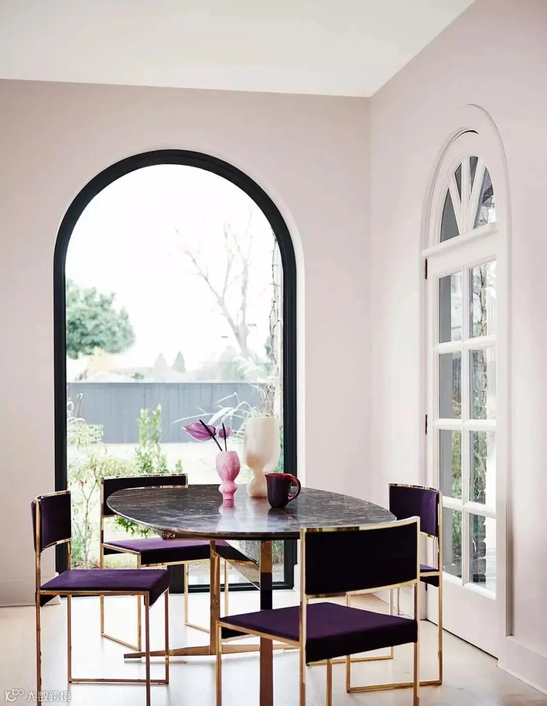 葡萄紫搭配白色,低调而不失奢华。