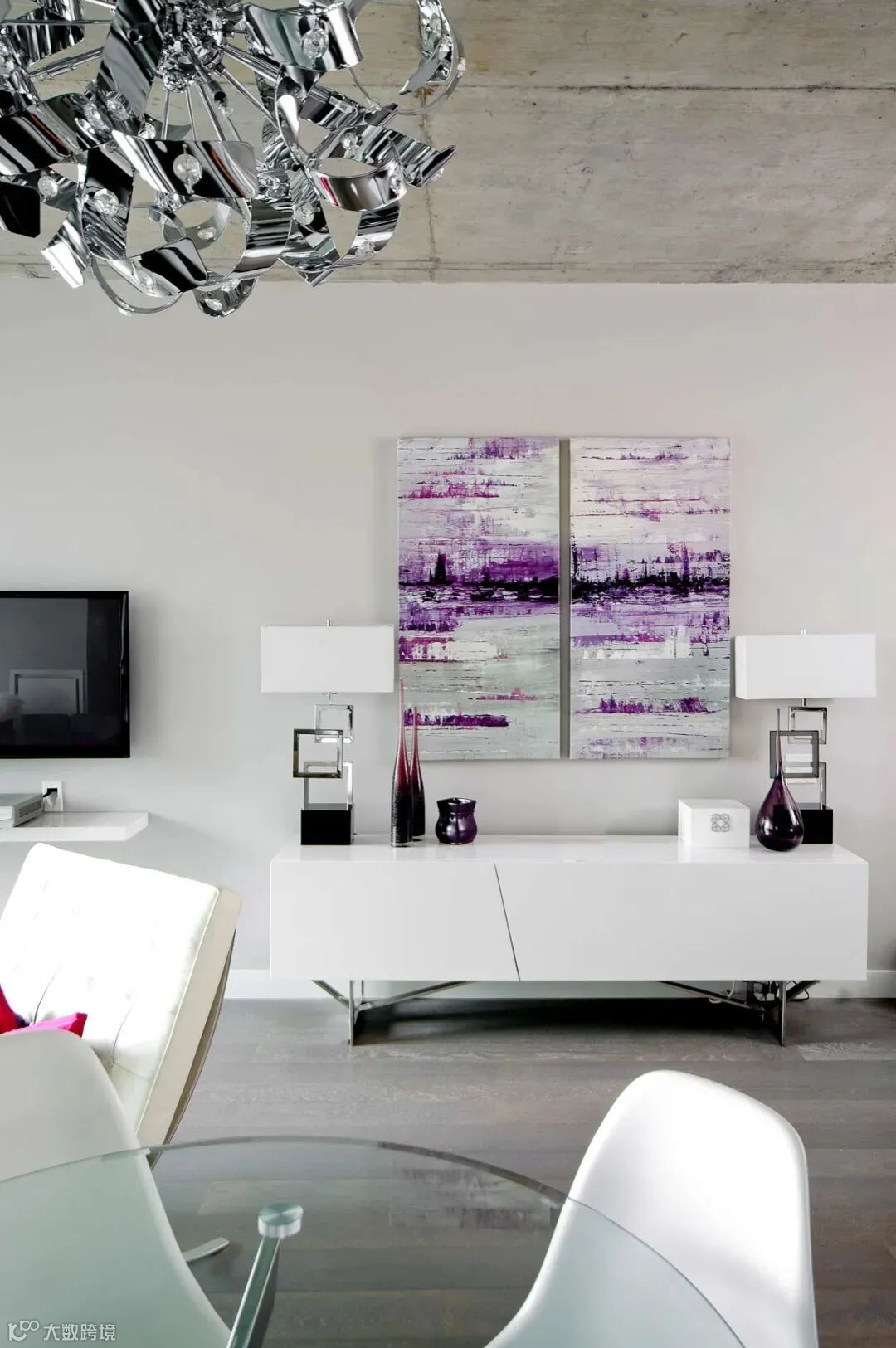 在室内设计中,紫色与白色搭配,最简单但又极具魅力。