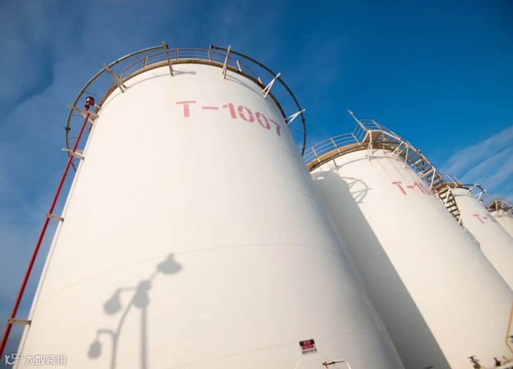 化工品库区储罐合计62座,总罐容为7.42万m³。