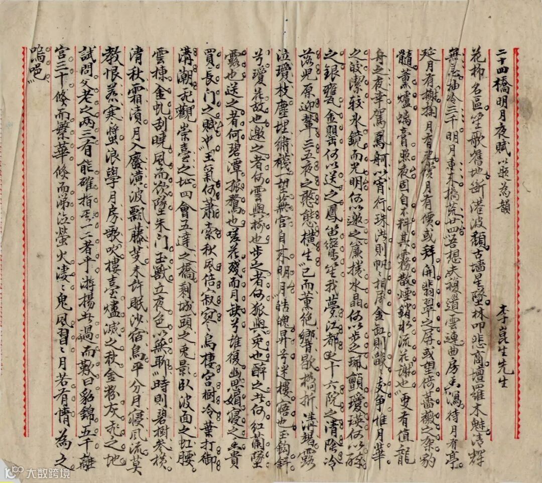 不惜階前地,憑君為作場。眉樓同詠硯,詞客謬稱薑(君藏前明顧橫波圭璧硯,余獻詞有淬妃衣袂雲輕之句,實剪竊伯建句也,乃謬承青睞,遂因伯建之介得附飲河之末。伯建謂余詞似姜白石)。示病維摩詰,急人杜季良。象街留夢寐(君寓齋在白象街),天地總茫茫。柯堯放