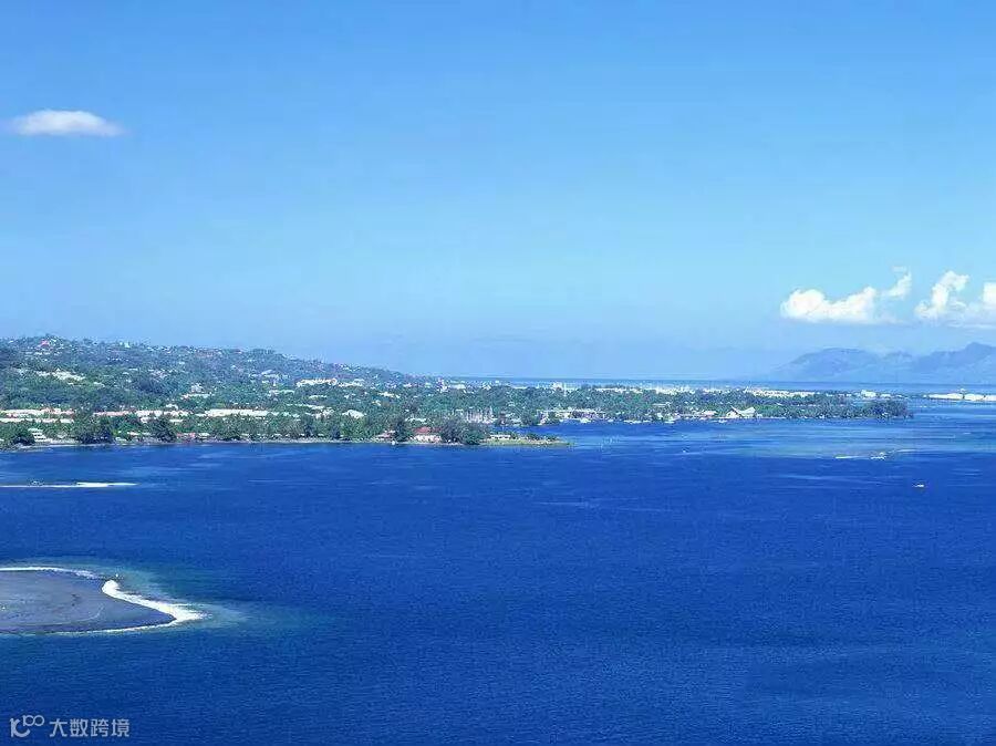 蔚蓝的海水,碧绿的树林