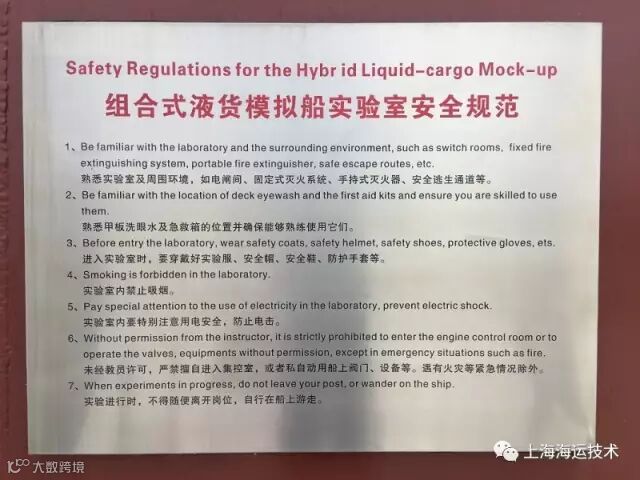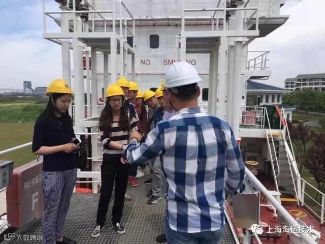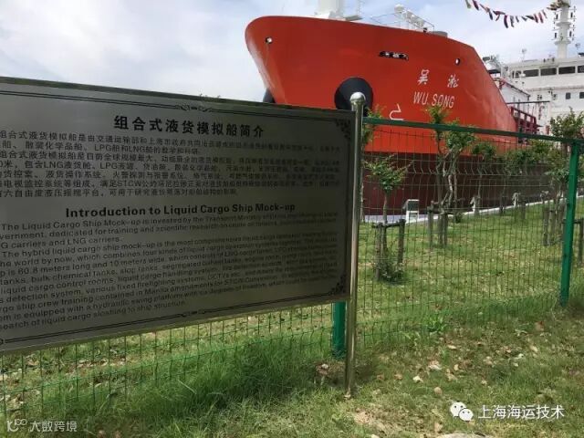 走进 “吴淞”号,在1000多平方米的实验舱里,LNG液货舱、LPG储液罐、货油舱、散装化学品舱、污油水舱、专用压载舱、机舱、泵舱及4种船型的货控室、液货操作系统、火警探测与报警系统、各类固定式灭火系统等4种液货船型的重要设备,被巧妙地集成在一艘钢质船体内。“吴淞”号的设计,充分地体现了油船、液体化学品船和液化气(LNG & LPG)船的特点和发展趋势。在宽阔的甲板上,团青们看到了纵横交错的彩虹管道,老师介绍,它们分别装载不同的货品,玫瑰色的是石油气、深蓝色的是液化天然气、橙色的是化学品,棕色的货油管道。像这样,将4种液货船融为一体的模拟教学船,“吴淞号”可谓全球唯一。