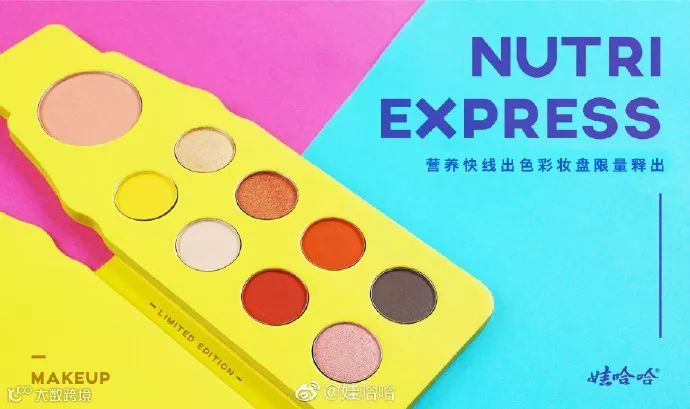 继可口可乐推出眼影盘、唇彩,麦当劳、德克士推出香水后,娃哈哈终于坐不住了!这不,不仅营养快线更新包装,更是跨界推出限量彩妆眼影盘。