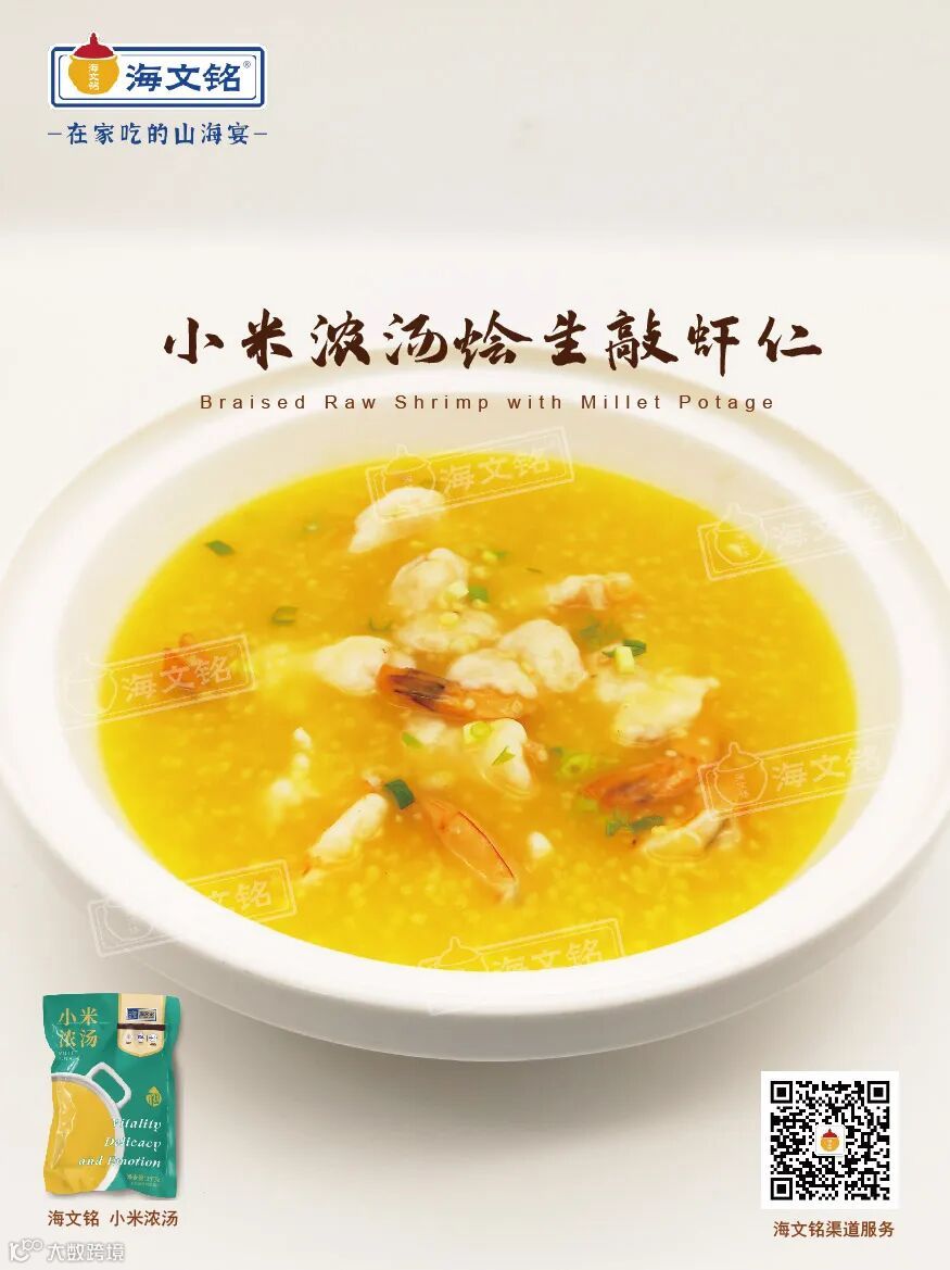 海文铭小米浓汤、南美对虾、葱、枸杞、生粉
