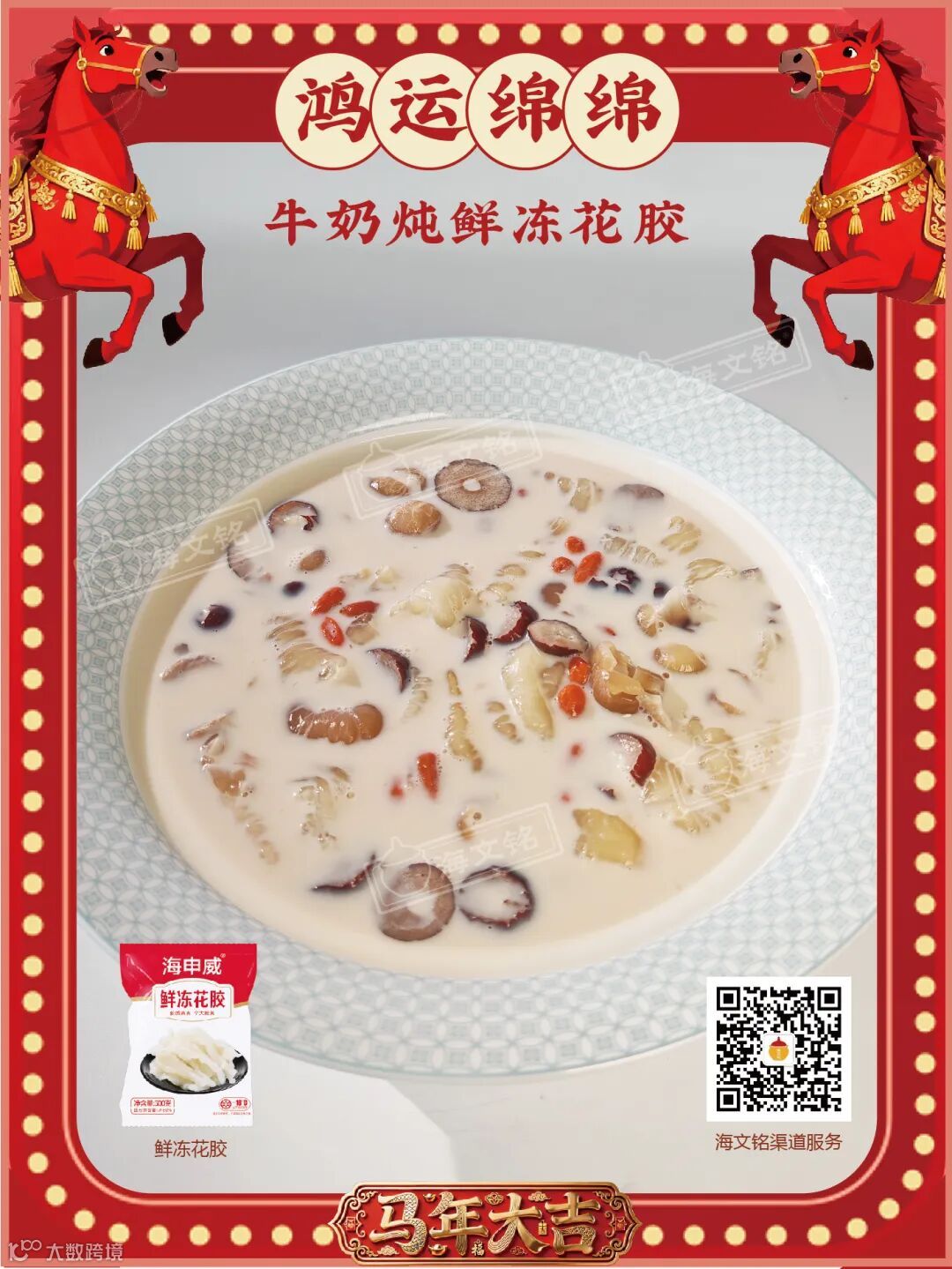 鲜冻花胶、桂圆肉、红枣片、枸杞、糖、牛奶