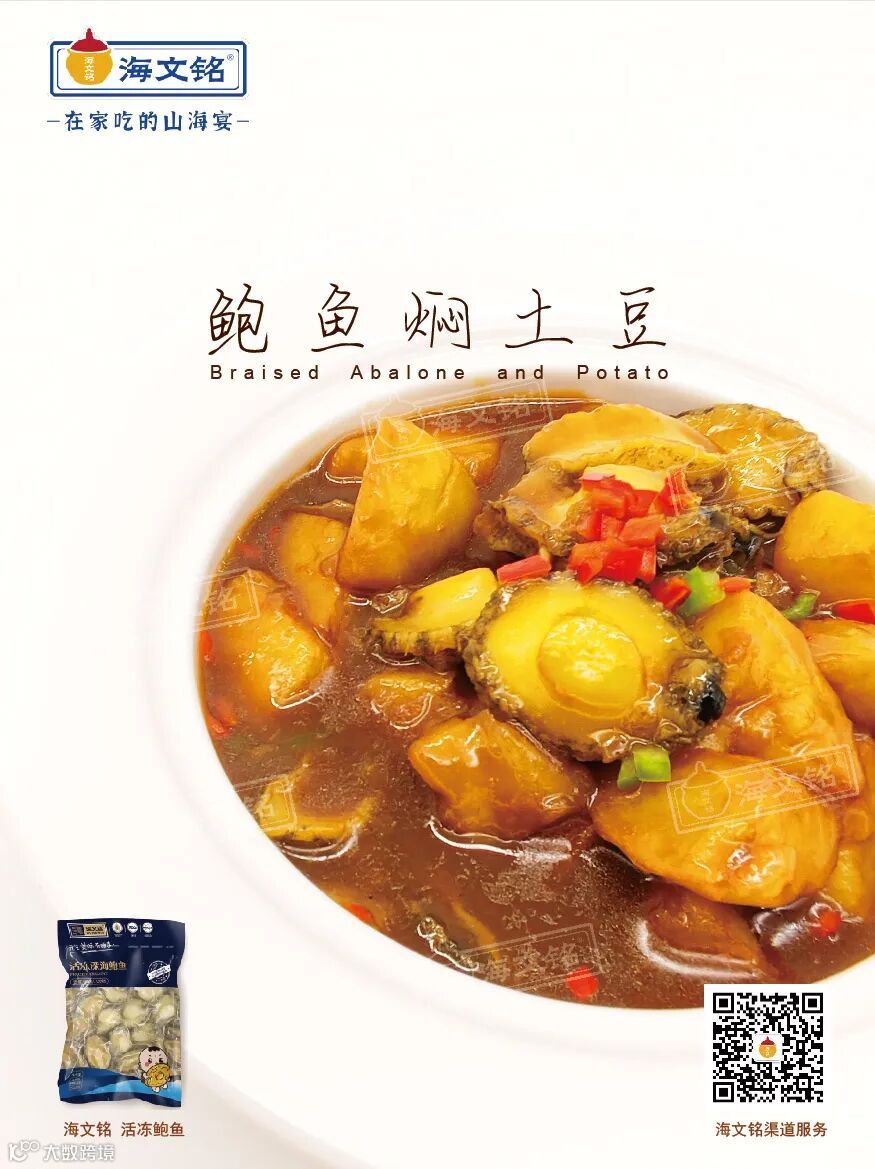 产品特点:来自福建平潭海域的鲍鱼Q弹鲜甜,搭配土豆焖熟之后,酱香浓郁,口感醇厚。