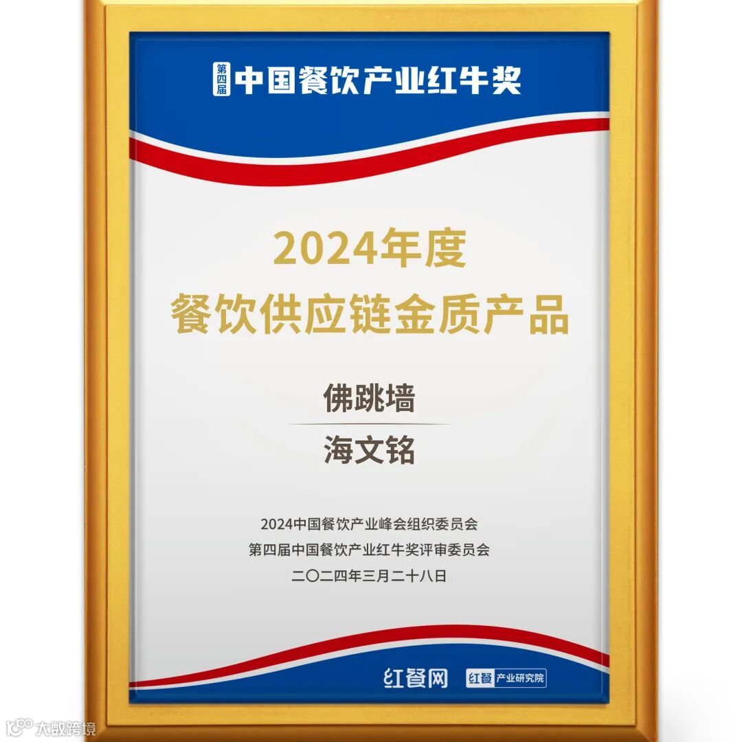 值得一提的是,今年红牛奖在前三届的基础上再次进行升级迭代,特别“对高价值、高品质的产品”增设了“2024年度餐饮供应链金质产品”奖。旨在评选出在餐饮上游供应链企业中,销量高、口碑好、品质佳的爆款产品,要求这类产品质量佳、口碑好,并且在餐饮市场上引起了不错的反响,是各个维度都很能打的金质产品。而海文铭佛跳墙成为唯一的佛跳墙产品上榜,这不但是对海文铭产品品质的认可,更是大众市场对海文铭佛跳墙的投票。