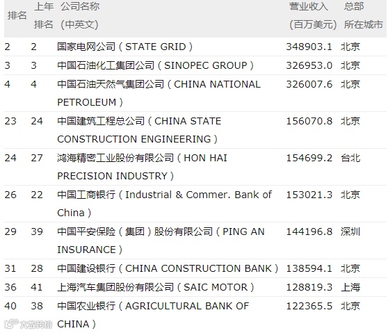 ▲2018《财富》500强 中国企业前十名榜单 来源:财富中文网