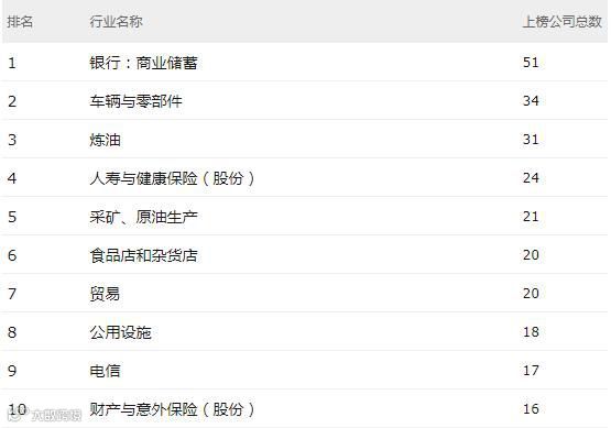 ▲《财富》500强排名前十的行业 来源:财富中文网