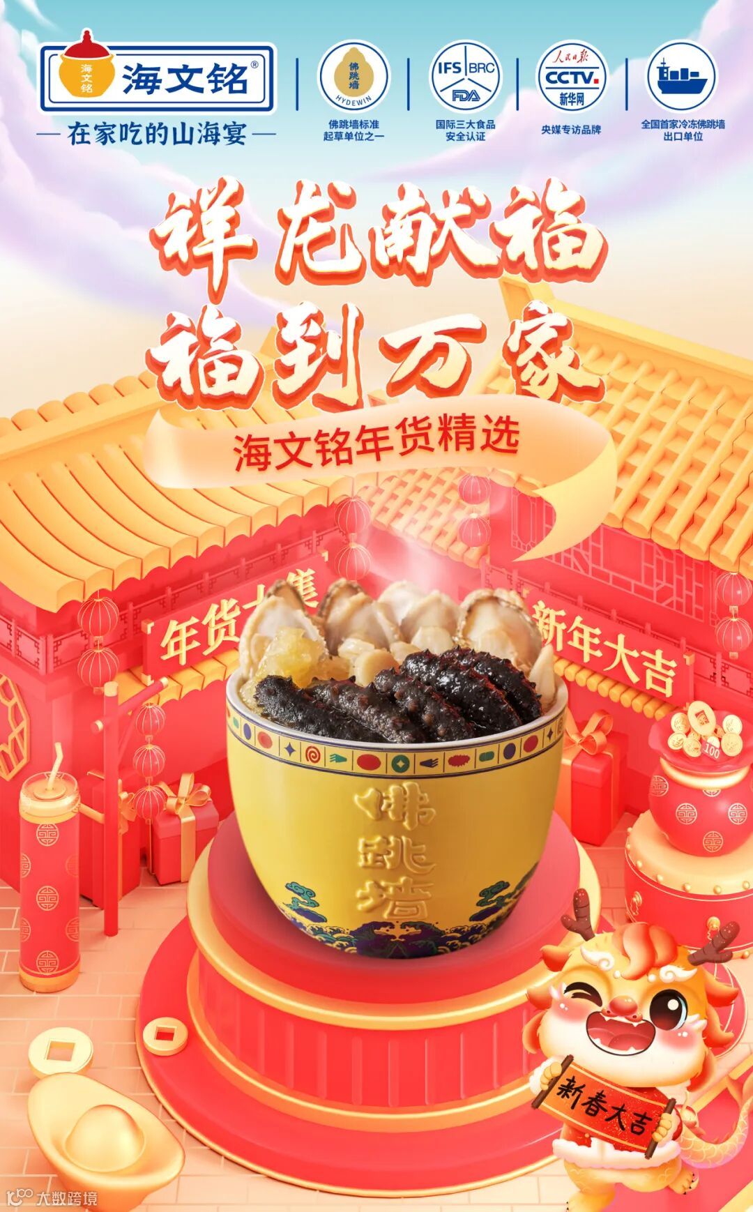 海文铭佛跳墙礼盒有即位6人份,也有全家人一起吃的大罐装,不仅送礼好看,摆上团圆宴的餐桌更是增添几分节庆氛围。