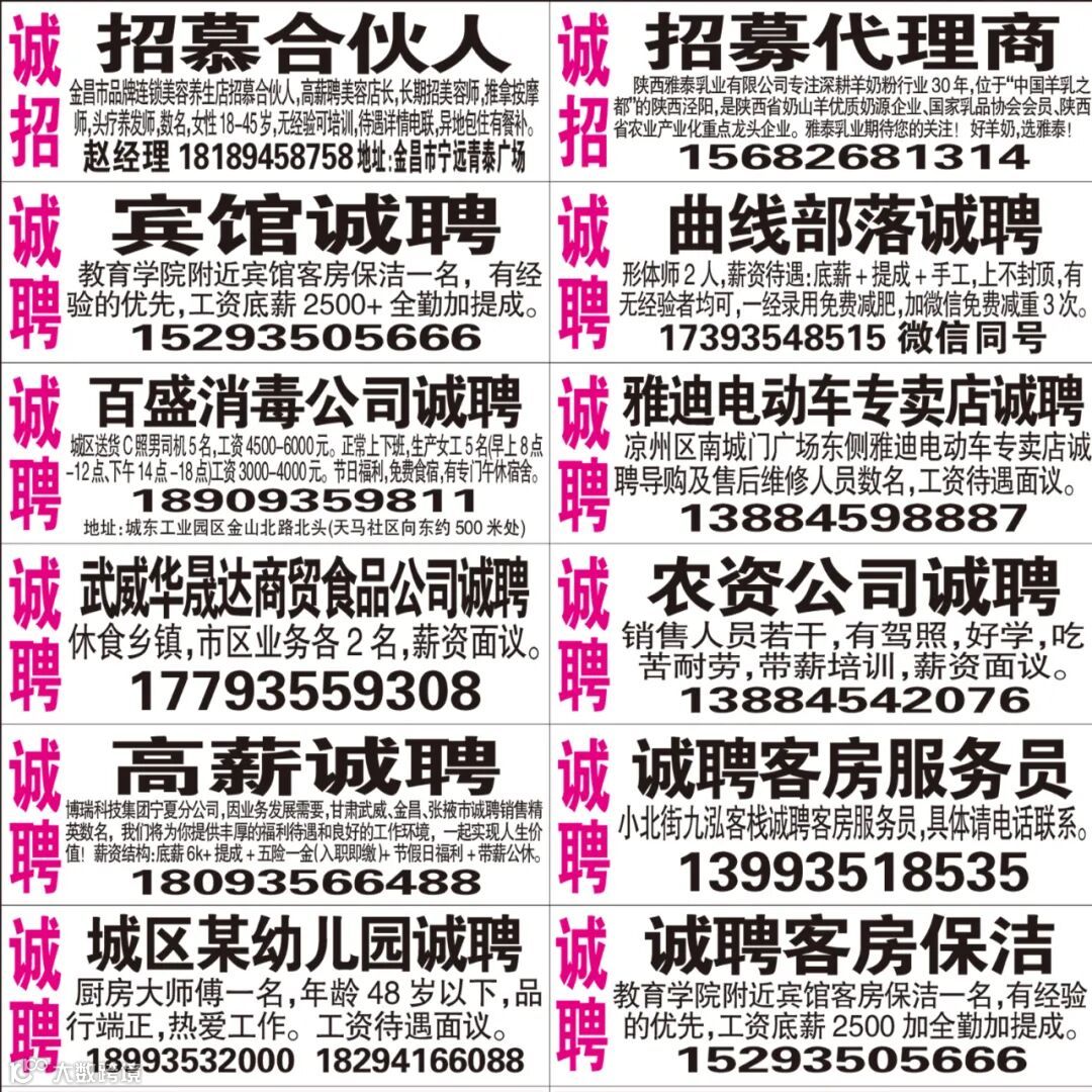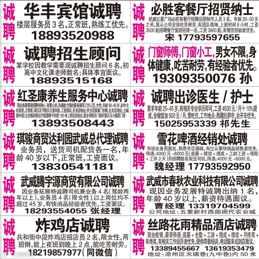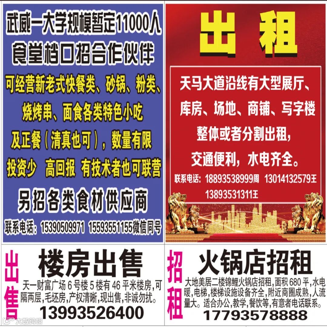 武威红柳广告和武威视觉传媒有限公司倾力打造武威本地网上生活平台,给您更好的本地资讯。招聘、求职、出租、转让、二手交易等便民信息查找、发布,商家优惠,吃喝玩乐购全都有。