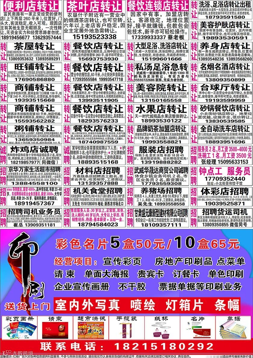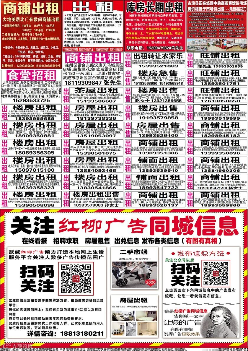 武威红柳广告和武威视觉传媒有限公司倾力打造武威本地网上生活平台,给您更好的本地资讯。招聘、求职、出租、转让、二手交易等便民信息查找、发布,商家优惠,吃喝玩乐购全都有。