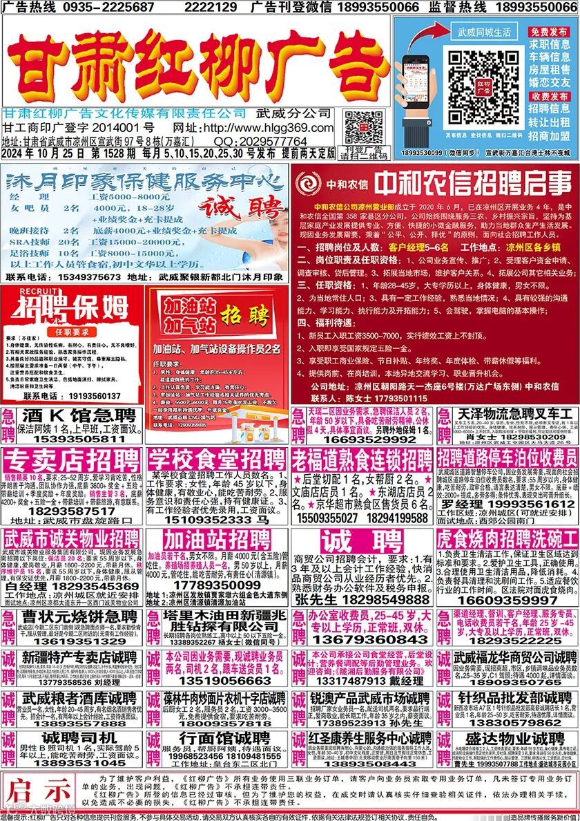 武威红柳广告电子报刊 ( 1527 1528期)2024年10月25日