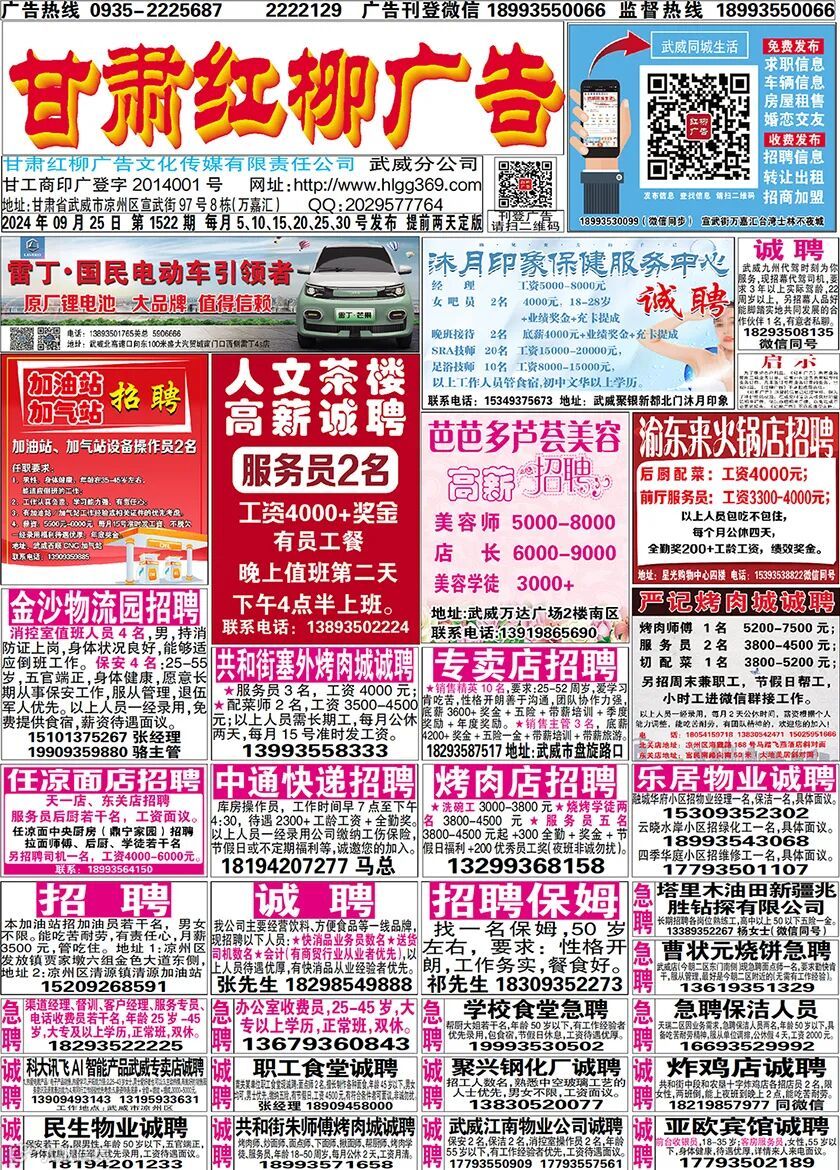 武威红柳广告电子报刊 ( 1522期)2024年09月25日