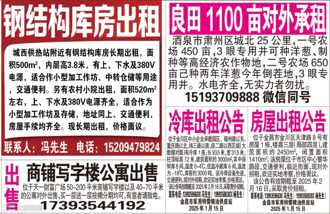 武威红柳广告电子报刊 ( 1546期)2025年02月15日