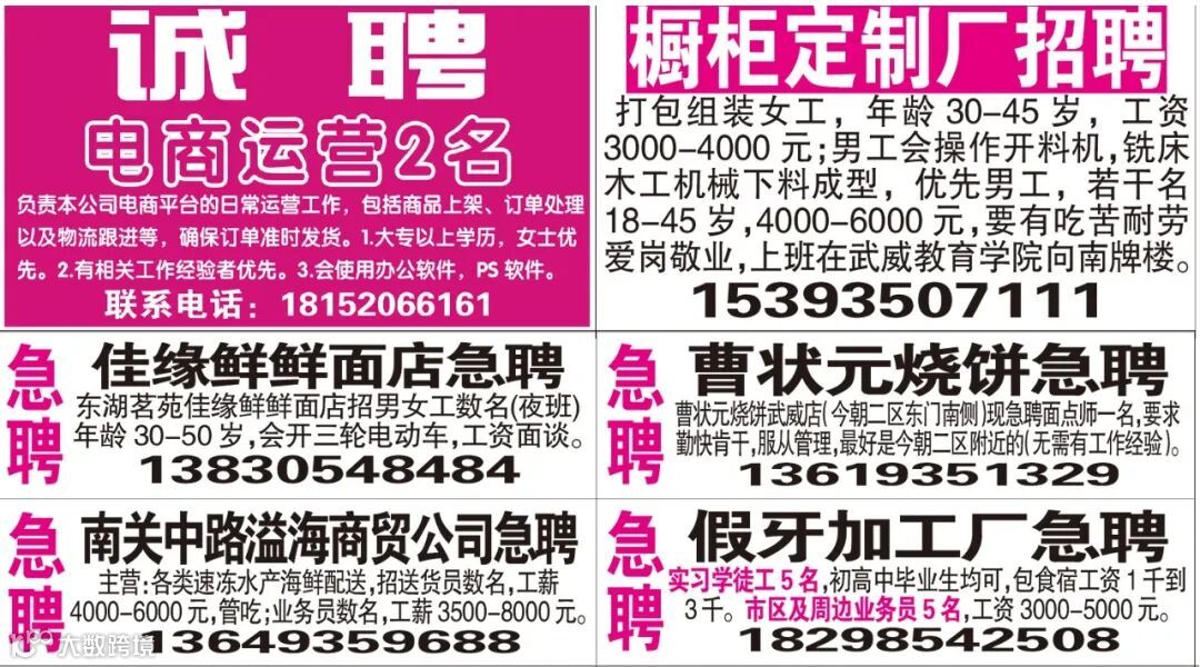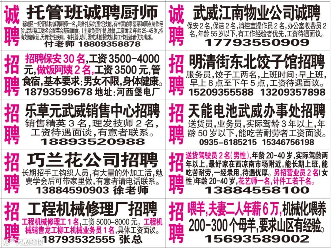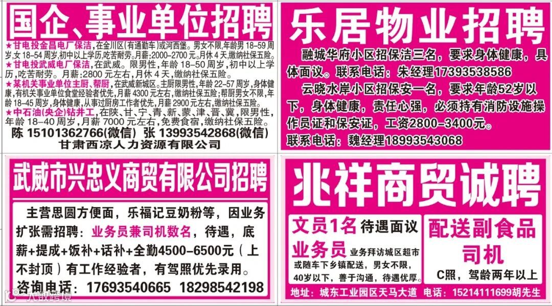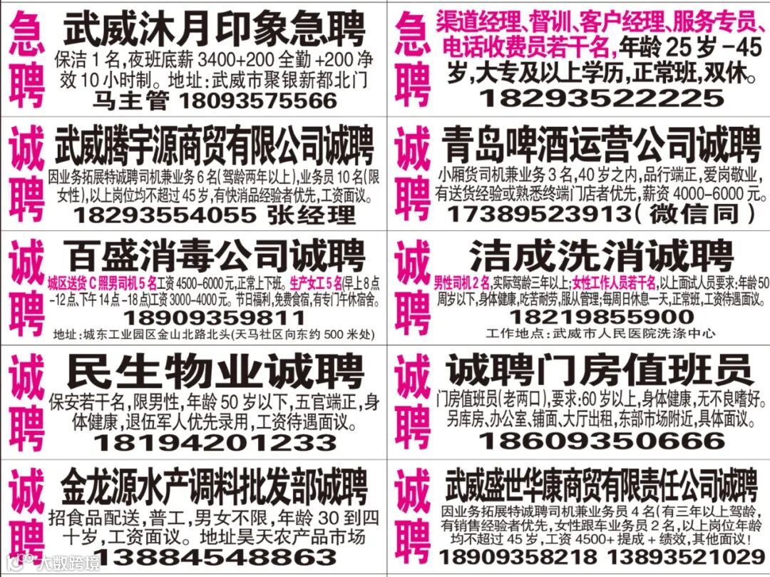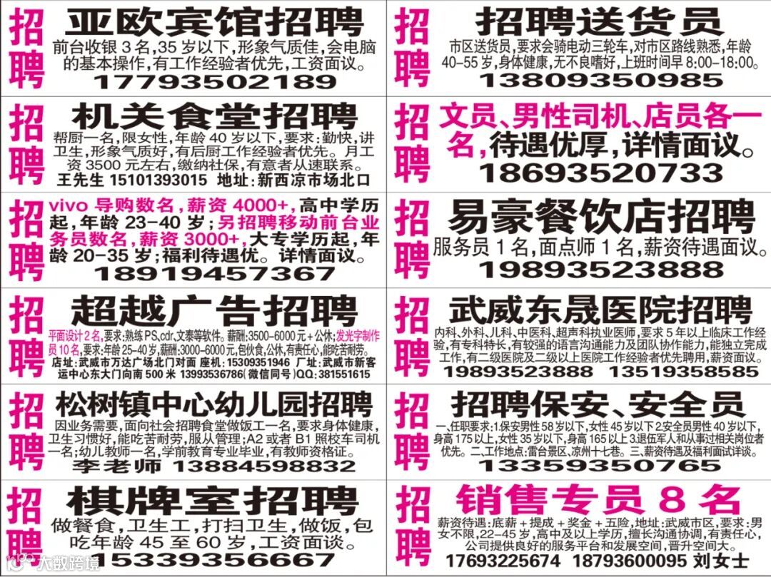 武威红柳广告和武威视觉传媒有限公司倾力打造武威本地网上生活平台,给您更好的本地资讯。招聘、求职、出租、转让、二手交易等便民信息查找、发布,商家优惠,吃喝玩乐购全都有。