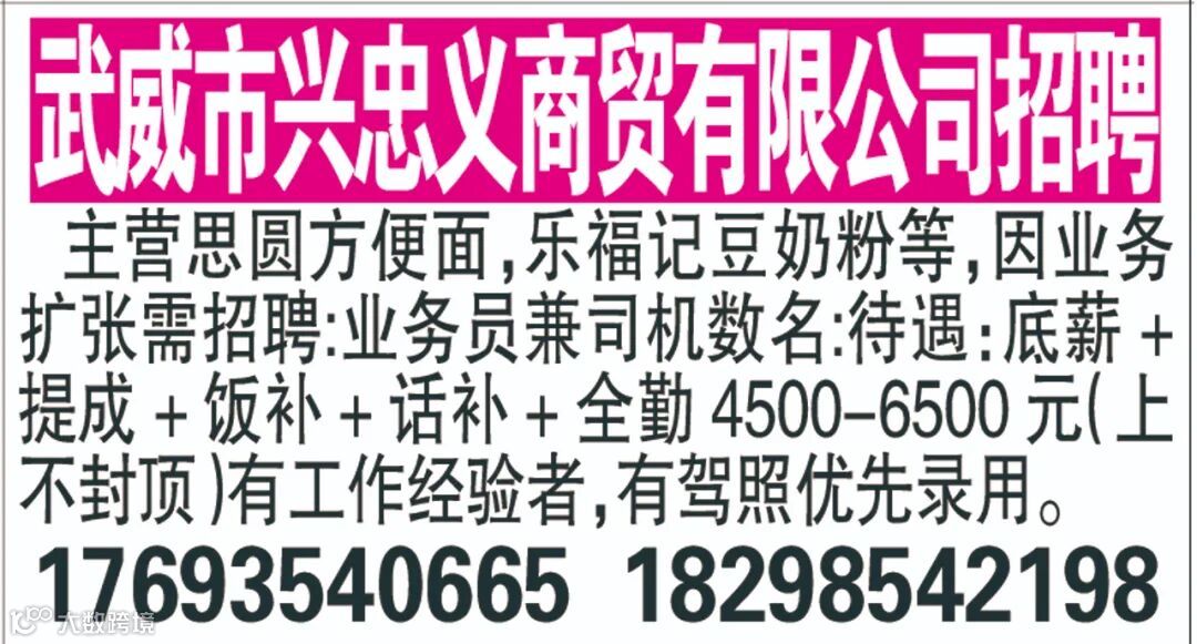 武威红柳广告和武威视觉传媒有限公司倾力打造武威本地网上生活平台,给您更好的本地资讯。招聘、求职、出租、转让、二手交易等便民信息查找、发布,商家优惠,吃喝玩乐购全都有。