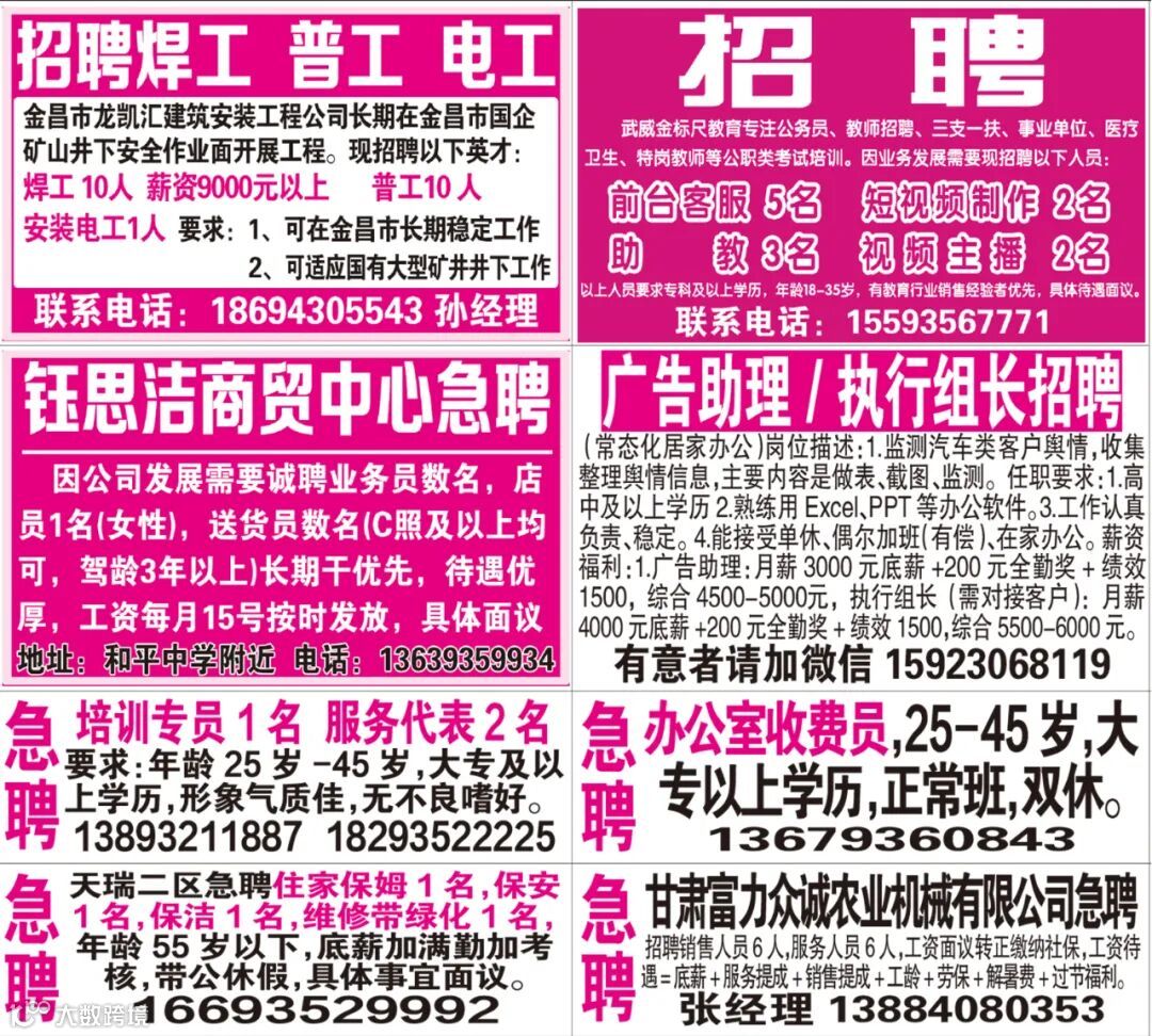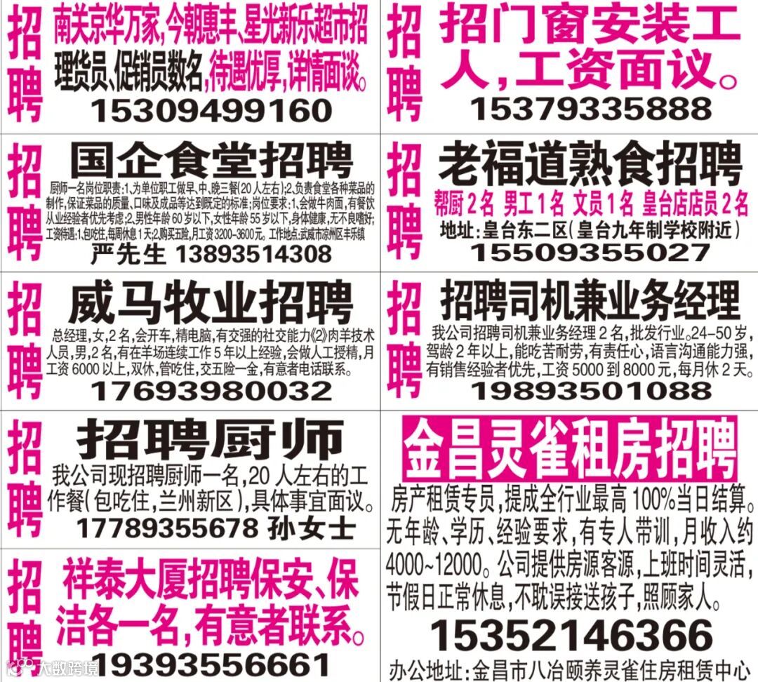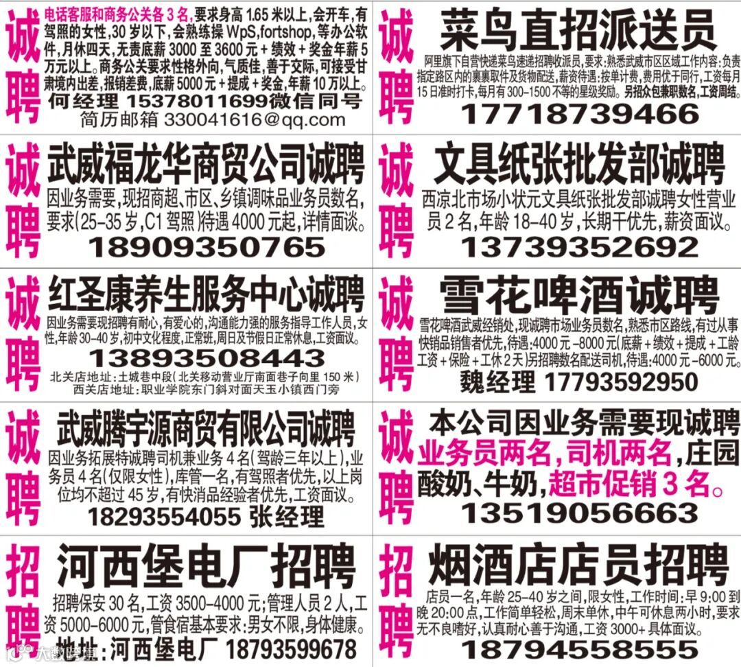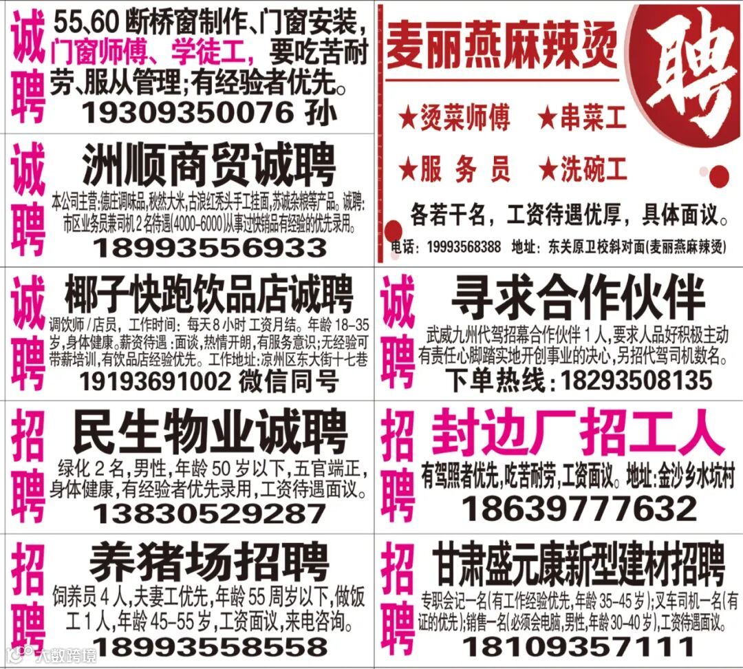武威红柳广告和武威视觉传媒有限公司倾力打造武威本地网上生活平台,给您更好的本地资讯。招聘、求职、出租、转让、二手交易等便民信息查找、发布,商家优惠,吃喝玩乐购全都有。
