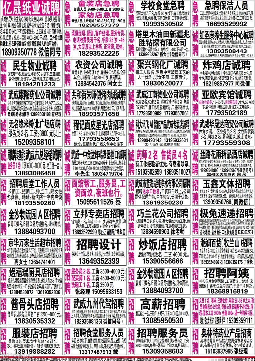 武威红柳广告和武威视觉传媒有限公司倾力打造武威本地网上生活平台,给您更好的本地资讯。招聘、求职、出租、转让、二手交易等便民信息查找、发布,商家优惠,吃喝玩乐购全都有。