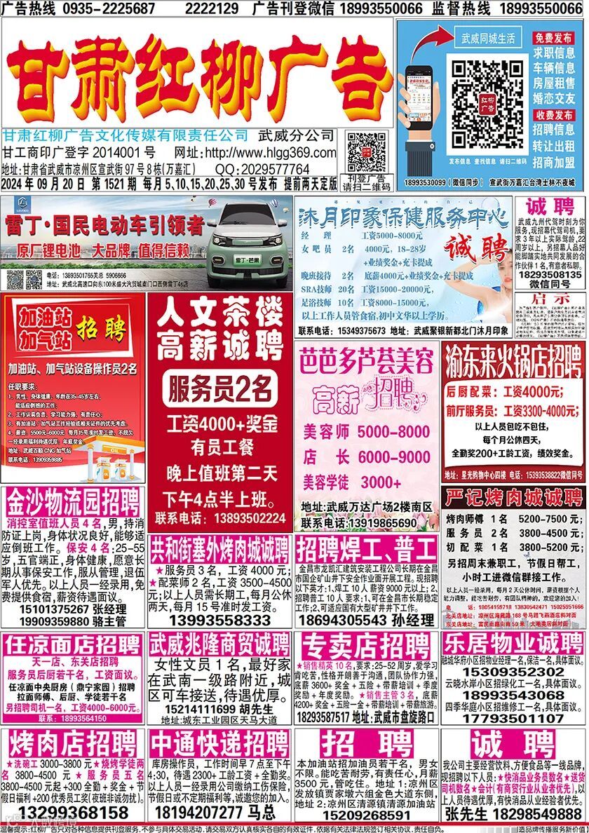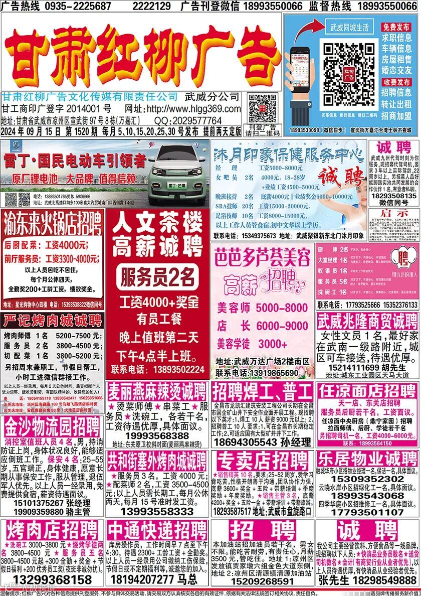 武威红柳广告电子报刊 ( 1520 1521期)2024年09月20日