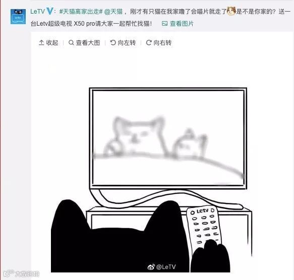 乐视电视说猫来过一下子就走了,不行我出一台电视机,谁找到送谁吧!