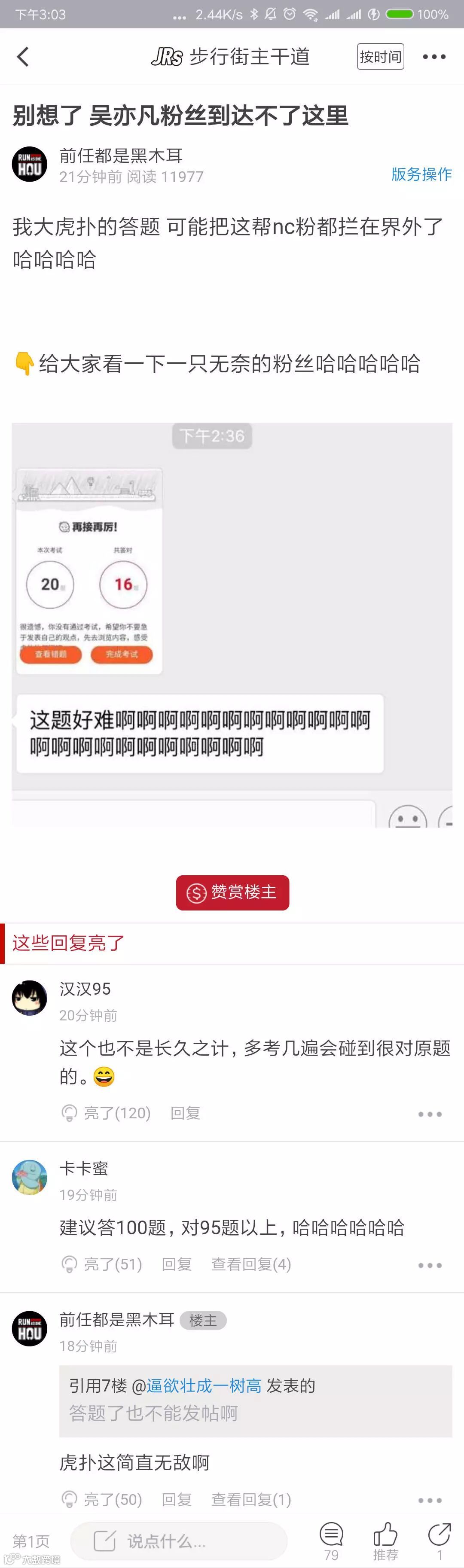 却被虎扑论坛的答题环节难住了