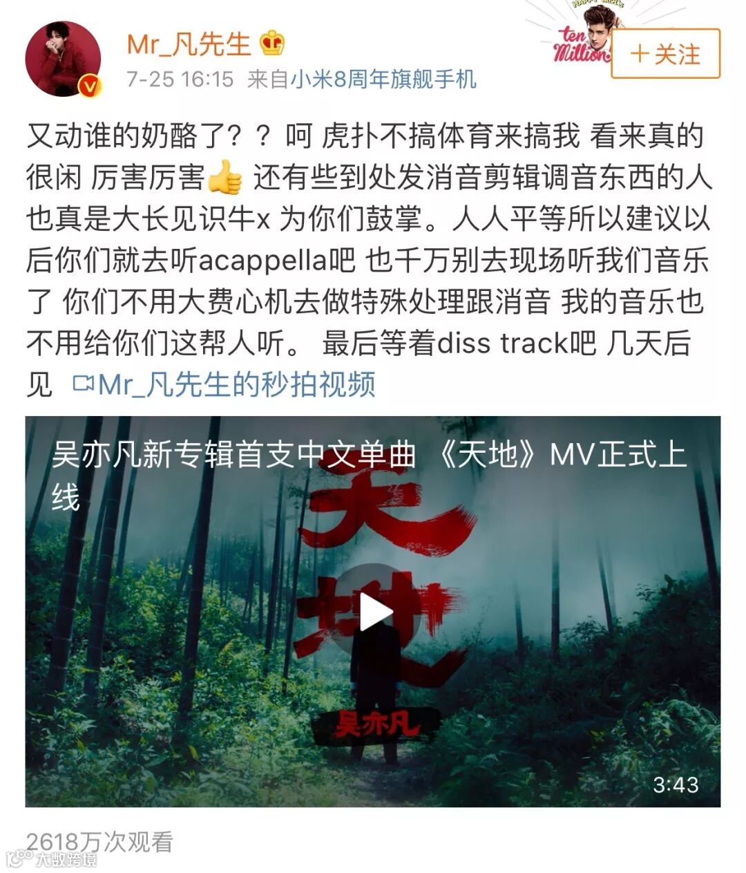 可能大家都在等吴亦凡diss track吧!