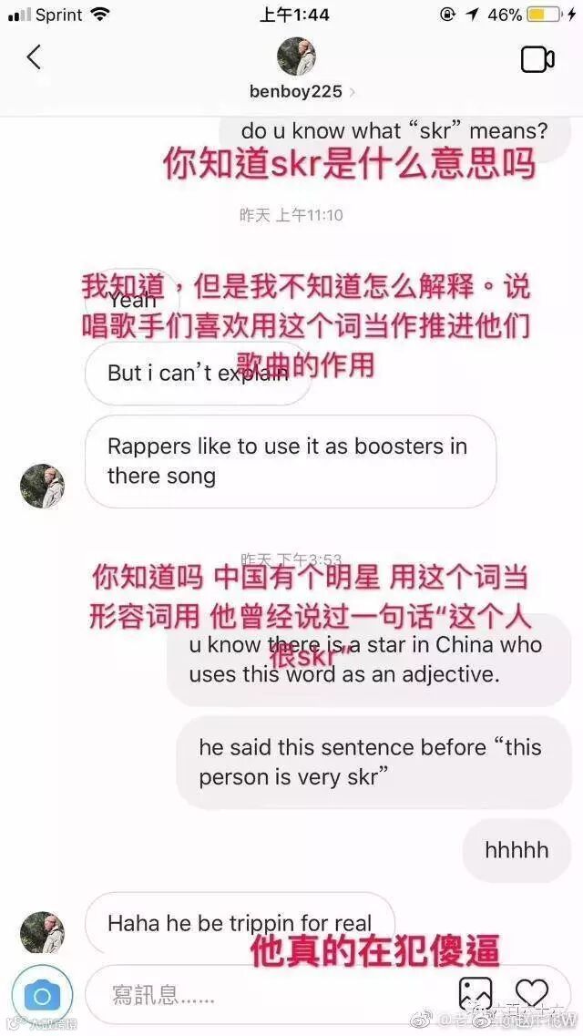 作为此次闹剧的中心词“skr”